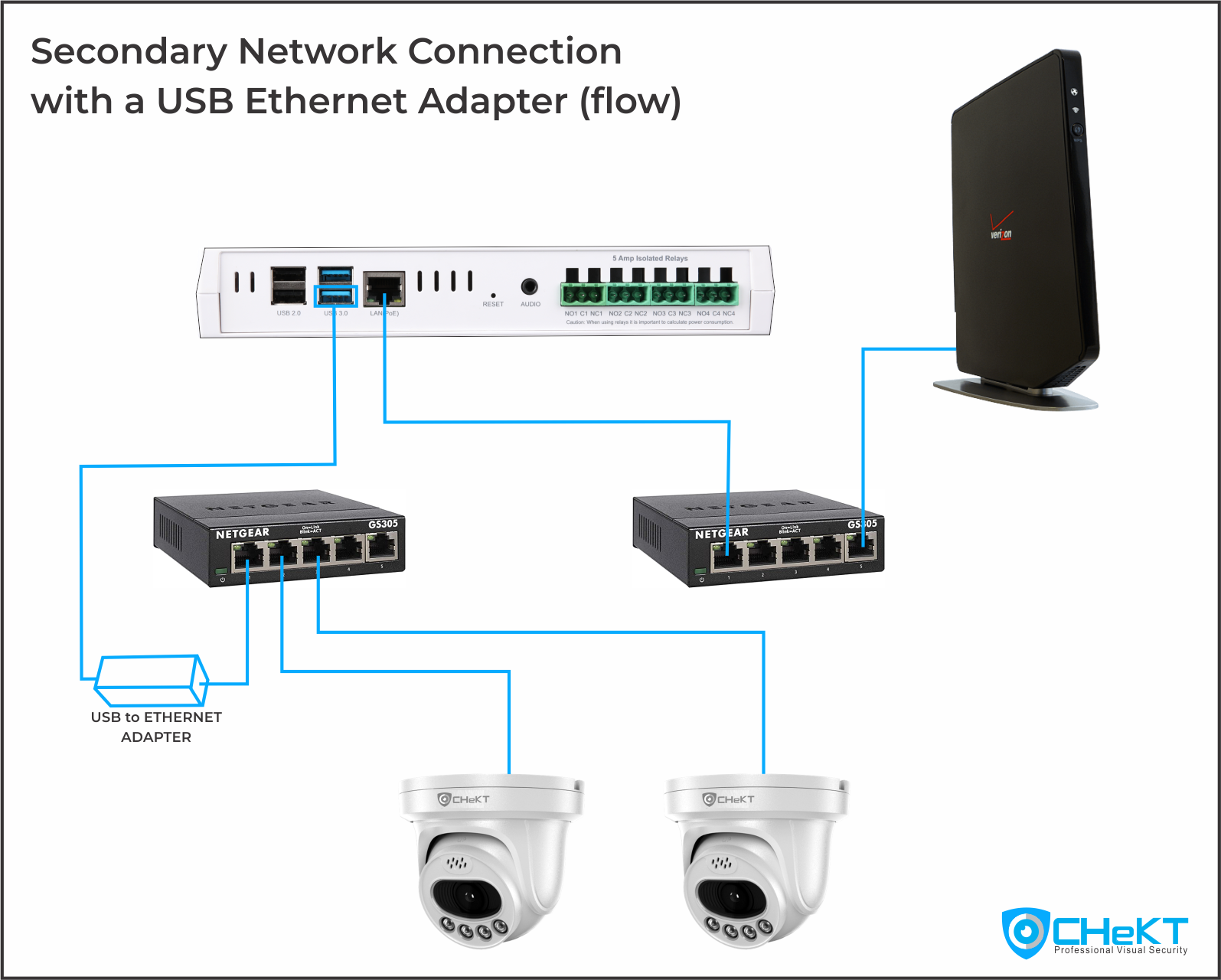 This article's primary goal is to teach the user how to set up a dual-NIC configuration using the CKB308 or CKB312 and a third party USB to Ethernet adapter.