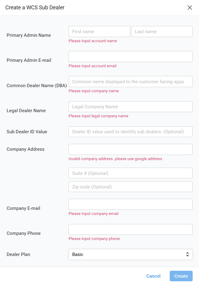 - When "create" is clicked, and invitation will be sent to the "Primary Admin Email", granting them Admin Access to their own dealer portal interface.