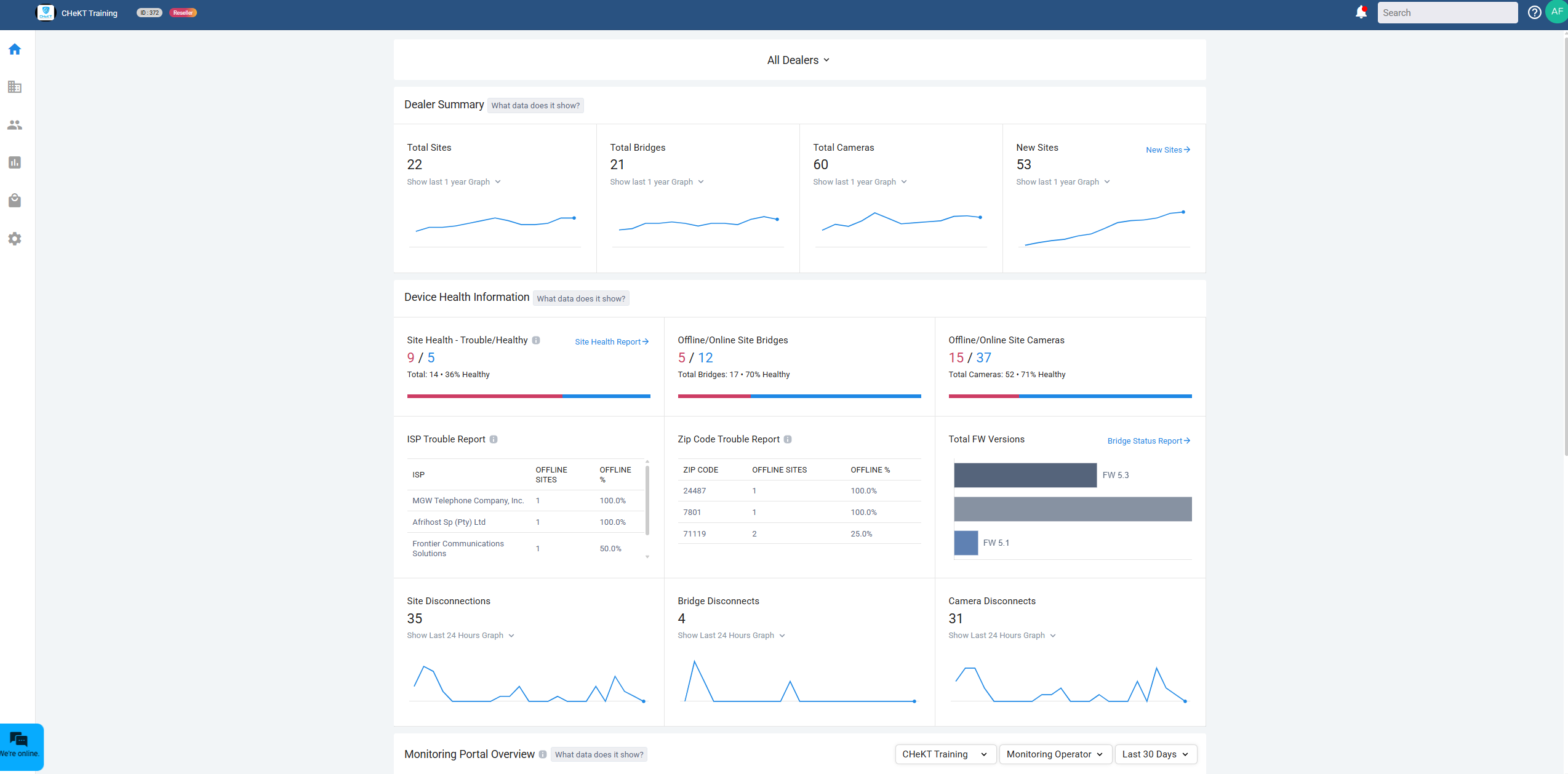 - Access the WCS Dealer Portal, by navigating to dealer.chekt.com and logging in with valid credentials. This will land the user on the dealer dashboard: