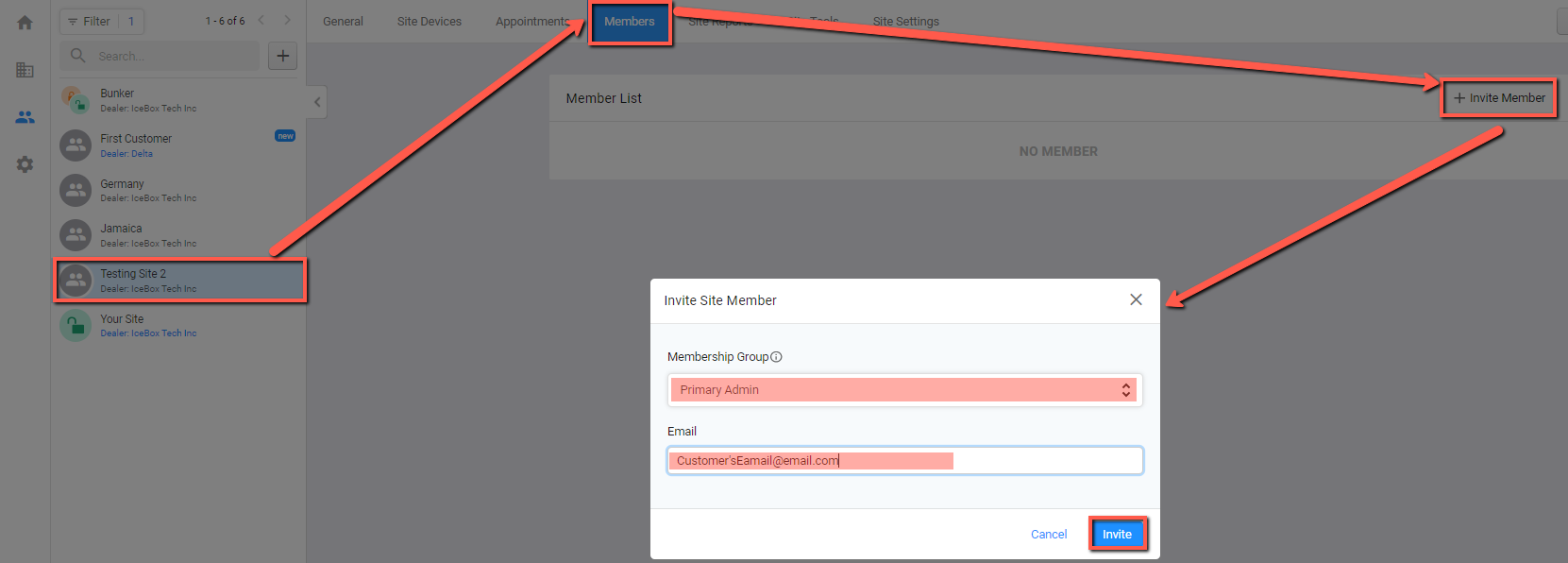 With the end-user CHeKT app your customer can now monitor and control their home or business in real-time and from anywhere. CHeKT's Visual Security System and automation solution gives your customer instant awareness and remote control for the places they care about most. Please follow these steps to invite your customer, providing them with access to their site via the CHeKT app. Inviting your customers to the site for app access.