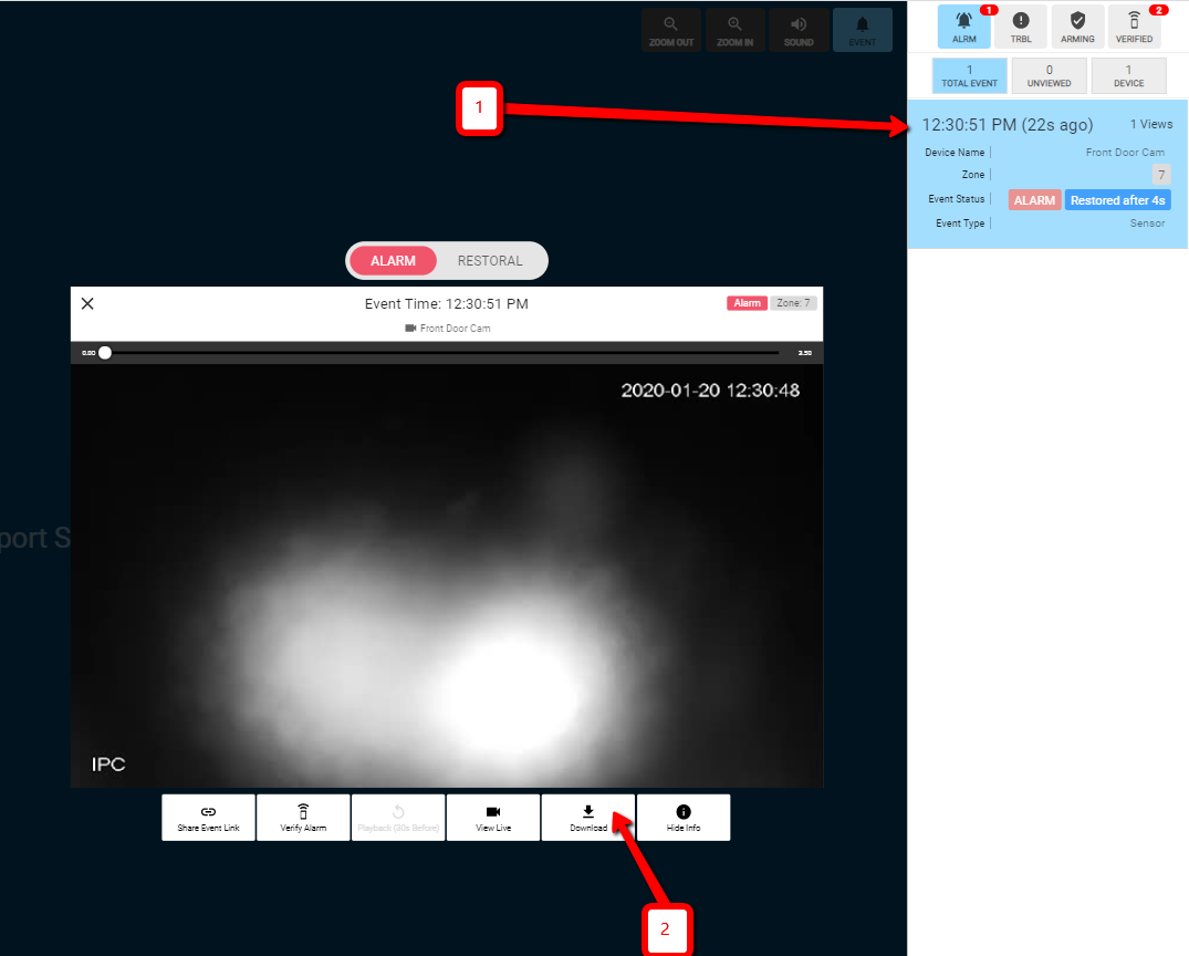 An authorized Monitoring Portal User can download an Alarm Event Clip directly from our Cloud Server to the Hard Drive of the local machine; here's how: