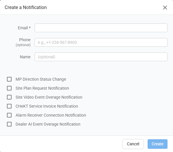 - Site Plan Request: (For Monitoring Stations) Any person setup with the Site Plan Request notification will receive an email when a Sub-Dealer request a plan change to their dealer account or one of their site accounts.